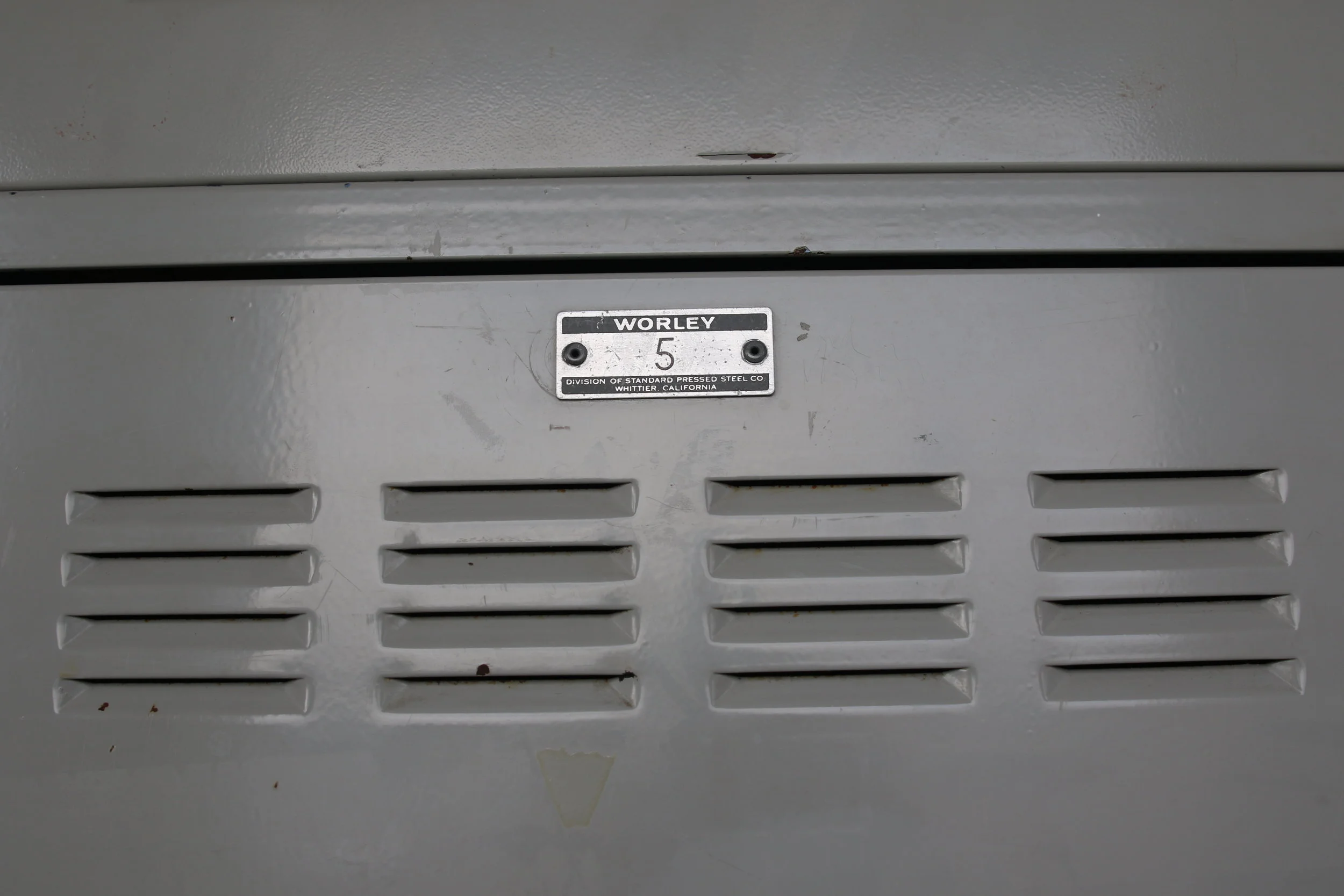 Locker Number 5 featured an exact replica of the same locker used by Chris Burden to perform what later became known as his Five Day Locker Piece in August of 1971. Locker Number 5 was a ‘reenactment,’ and provided the audience an opportunity to experience the work by inhabiting the exact dimensions of the locker number 5 via a cavity built into the physical gallery space. If a viewer actively participated with the installation by crawling and sitting in the cavity, they were issued a lapel pin based off of the original locker number tag Burden himself inhabited.